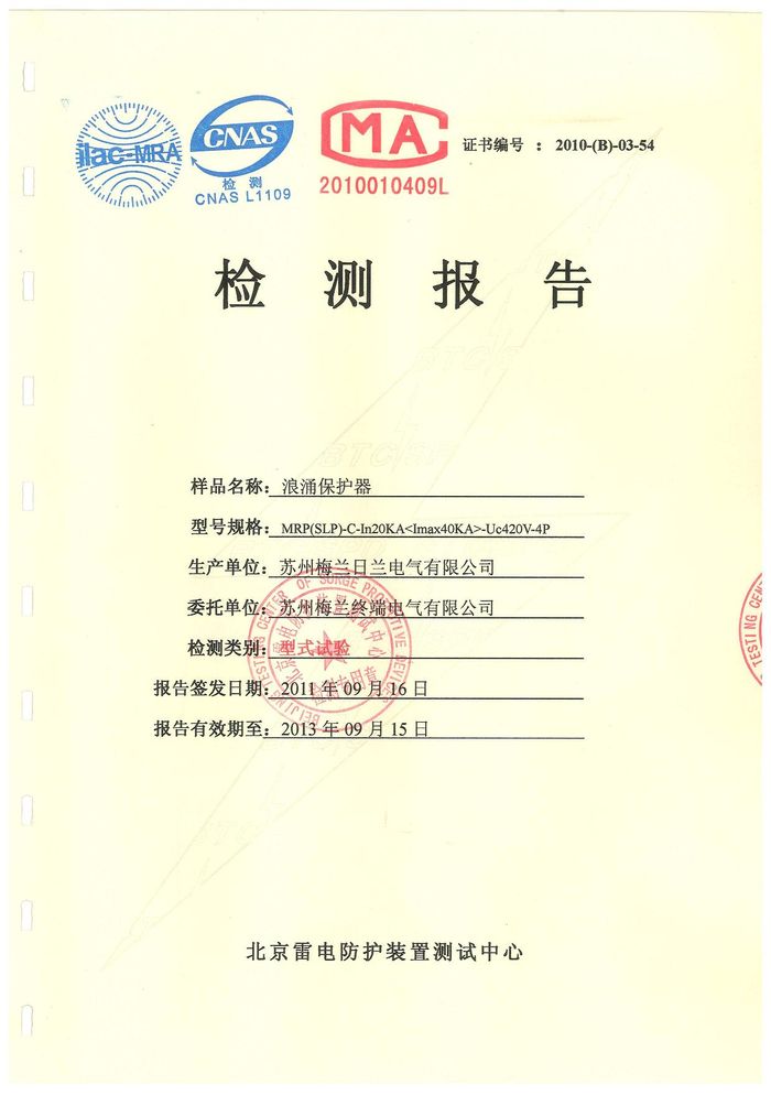 浪涌 MRP20KA資質(zhì)證書