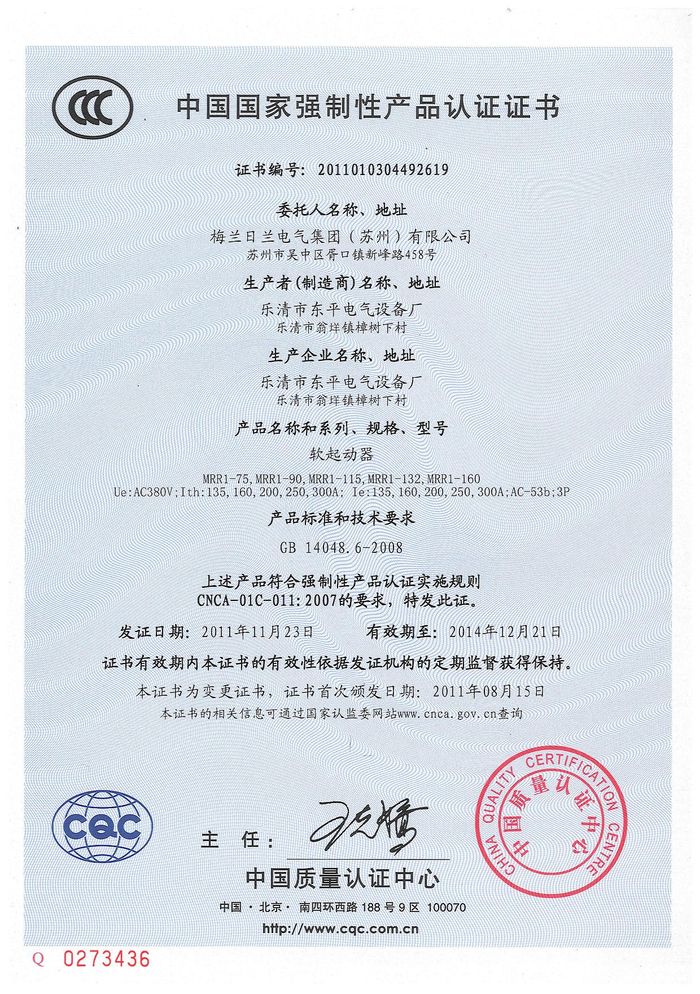 MRR1-75軟啟動(dòng)資質(zhì)證書(shū)