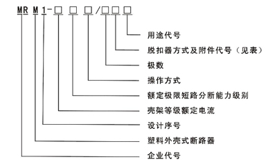 200:表示僅有電磁脫扣器的斷路器本體:300:表示帶有熱動一電磁脫扣器的斷路器本體;000:不帶脫扣器的斷路器本體;對MRMl-100、225=極產(chǎn)品只有21 0、31 0、220、320、230、330;對MRMl-63、1 00及MRMl-225四極斷路器、N極為A型和D型中無240、340、260、360、218、318、248、348、268、368;