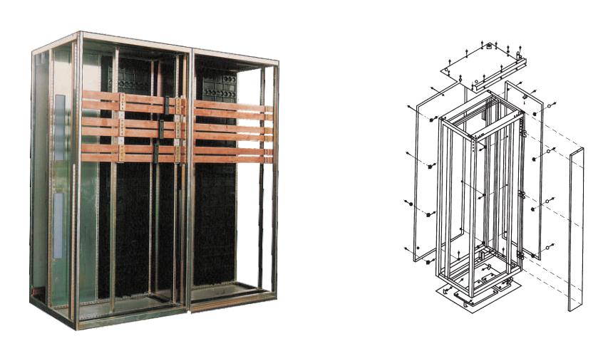 柜體基本結(jié)構(gòu)為本公司適用組合式結(jié)構(gòu).以C型型材(基本模數(shù)E=25mm)為主要結(jié)構(gòu)件,采用鎖緊自攻螺釘和8.8級(jí)高強(qiáng)度螺栓緊固而成,因而柜體精度高、剛性好、接地連續(xù)性好。