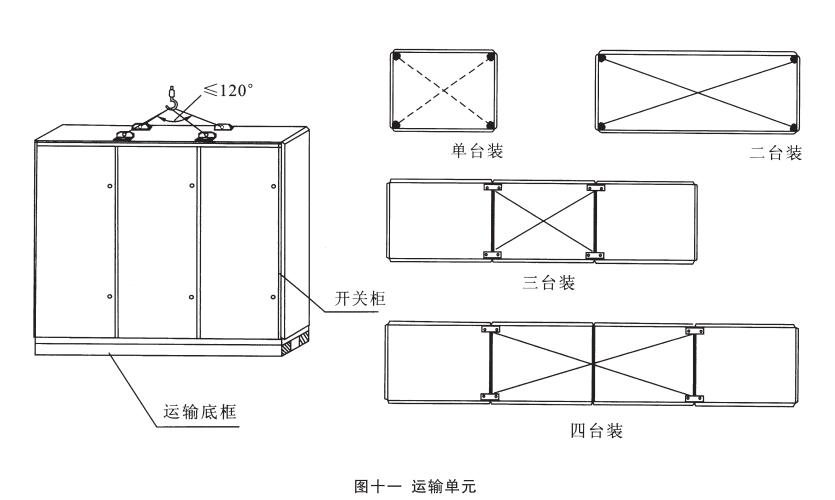 運(yùn)輸單元:產(chǎn)品分四種規(guī)格的運(yùn)輸單元:單臺(tái)裝、二臺(tái)裝、三臺(tái)裝和四臺(tái)裝。但總長(zhǎng)度不得超過(guò)3m,見圖十一。
