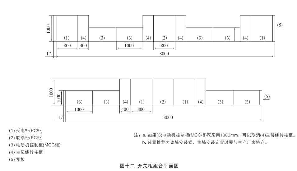 安裝:開關(guān)柜就位。找準(zhǔn)位置,按圖十一所示進(jìn)行焊接,焊接節(jié)柜和焊長(zhǎng)由用戶確定,產(chǎn)品安裝與配電室的相對(duì)位置參考圖十二,其中吊索是否安裝由用戶確定,制造商提供的原則是:當(dāng)母線橋的長(zhǎng)度大于3米時(shí)應(yīng)考慮安裝吊索。但是,當(dāng)母線橋的電流大于或等于2500A時(shí),其長(zhǎng)度為2.5米時(shí)也應(yīng)安裝吊索。